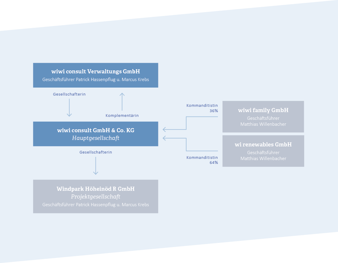 Projektverantwortlich ist die wiwi consult GmbH & Co. KG mit Sitz in Mainz, ein erfahrenes Projektentwicklungsunternehmen für Wind- und Solarenergieprojekte. Die Emittentin plant, entwickelt und betreibt deutschlandweit sowie international Anlagen zur Erzeugung erneuerbarer Energien und übernimmt als Emittentin die Umsetzung und Finanzierung des Projekts.
